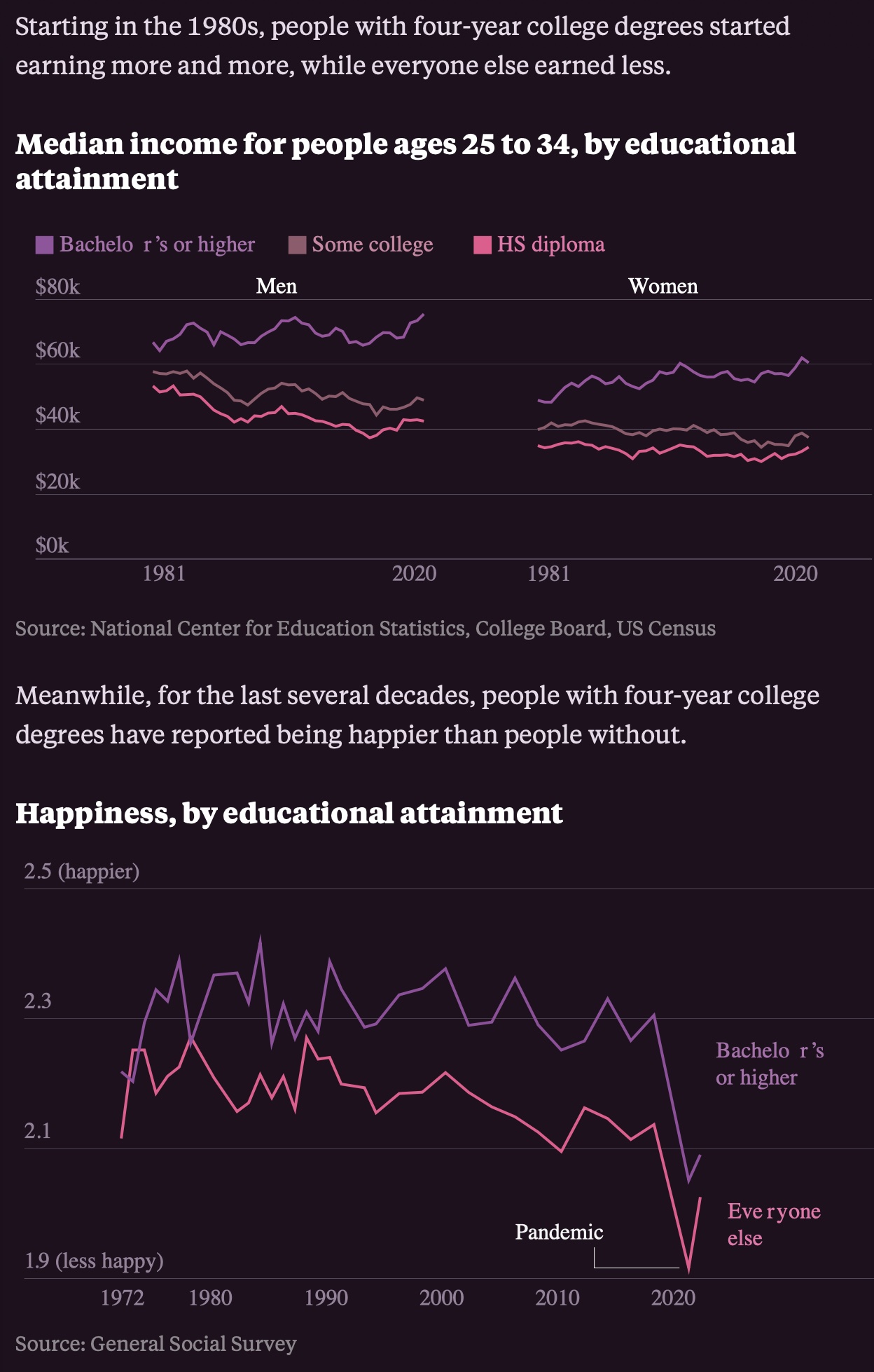 Mit höherer Bildung steigen sowohl das Einkommen als auch das Lebensglück.