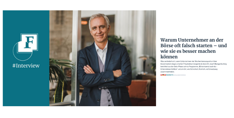 Im e-fundresearch.com-Interview spricht Dr. Josef Obergantschnig über sein neues Beta-Programm „Börse kannst auch du – Unternehmer-Edition“. Ziel ist es, Unternehmer:innen beizubringen, wie sie ihr Kapital mit derselben Logik steuern wie ihr eigenes Unternehmen.