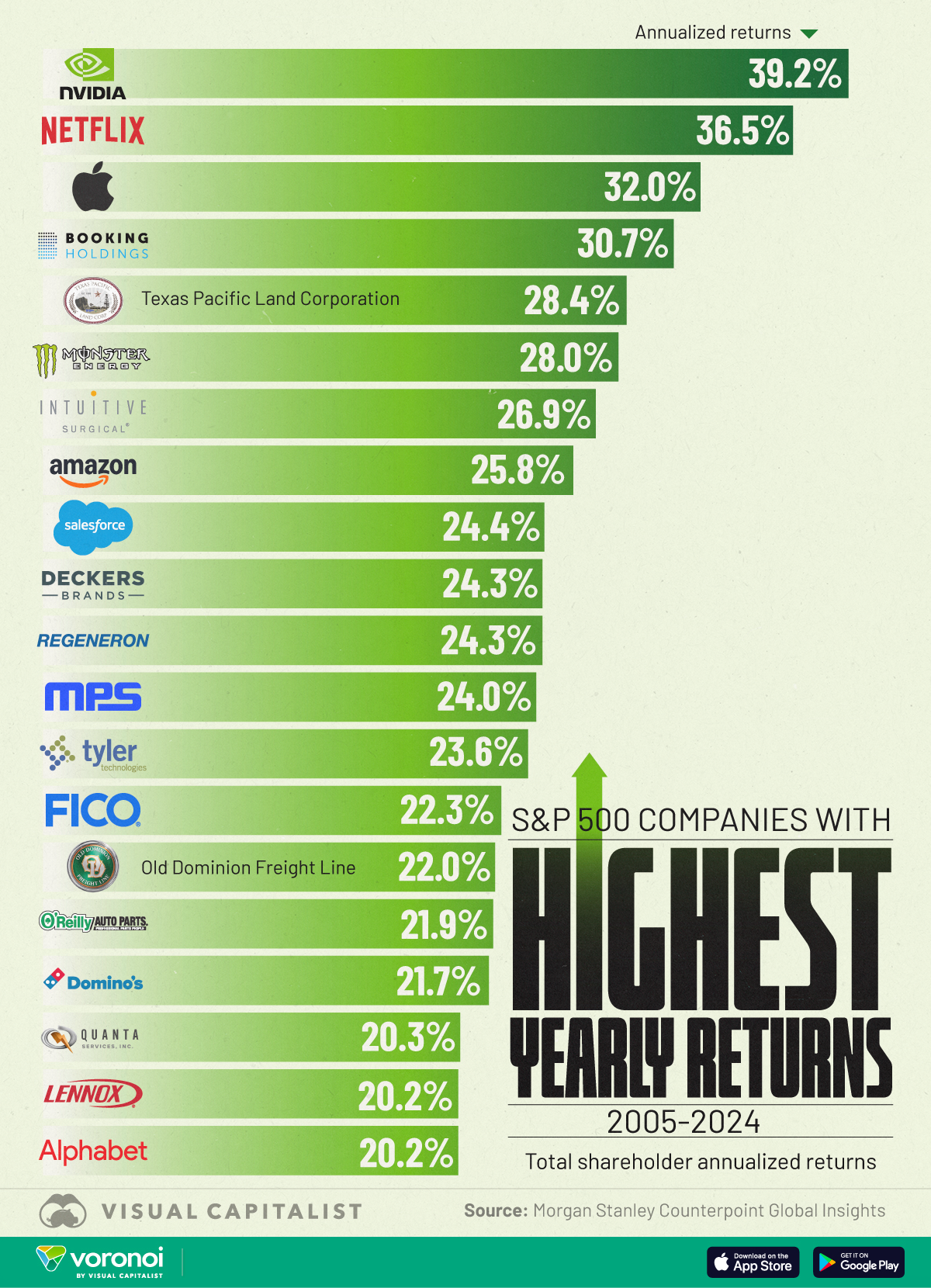 Ein Investment in die richtigen Unternehmen zahlt sich aus. Diese 10 Firmen haben seit 2005 die höchsten jährlichen Renditen für Anleger erzielt: