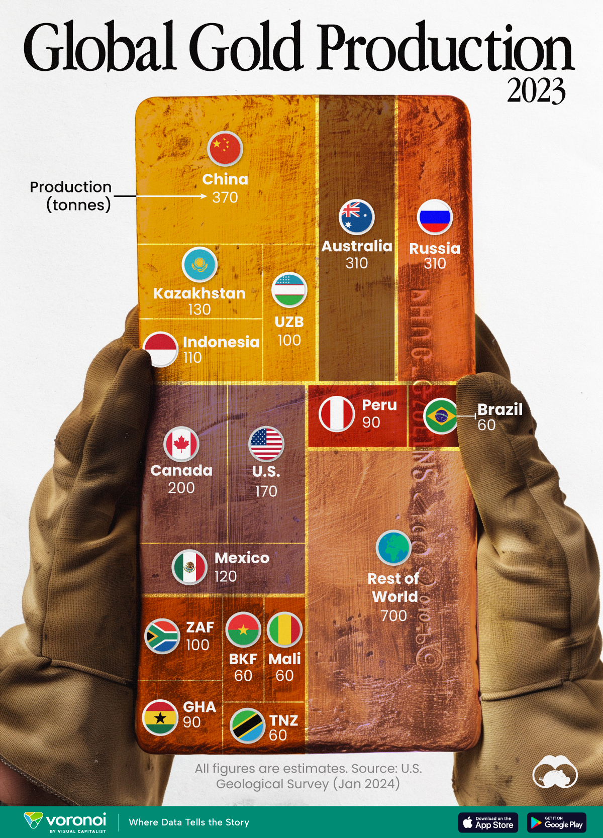 Laut Schätzungen des World Gold Council sind die größten Produzenten:
