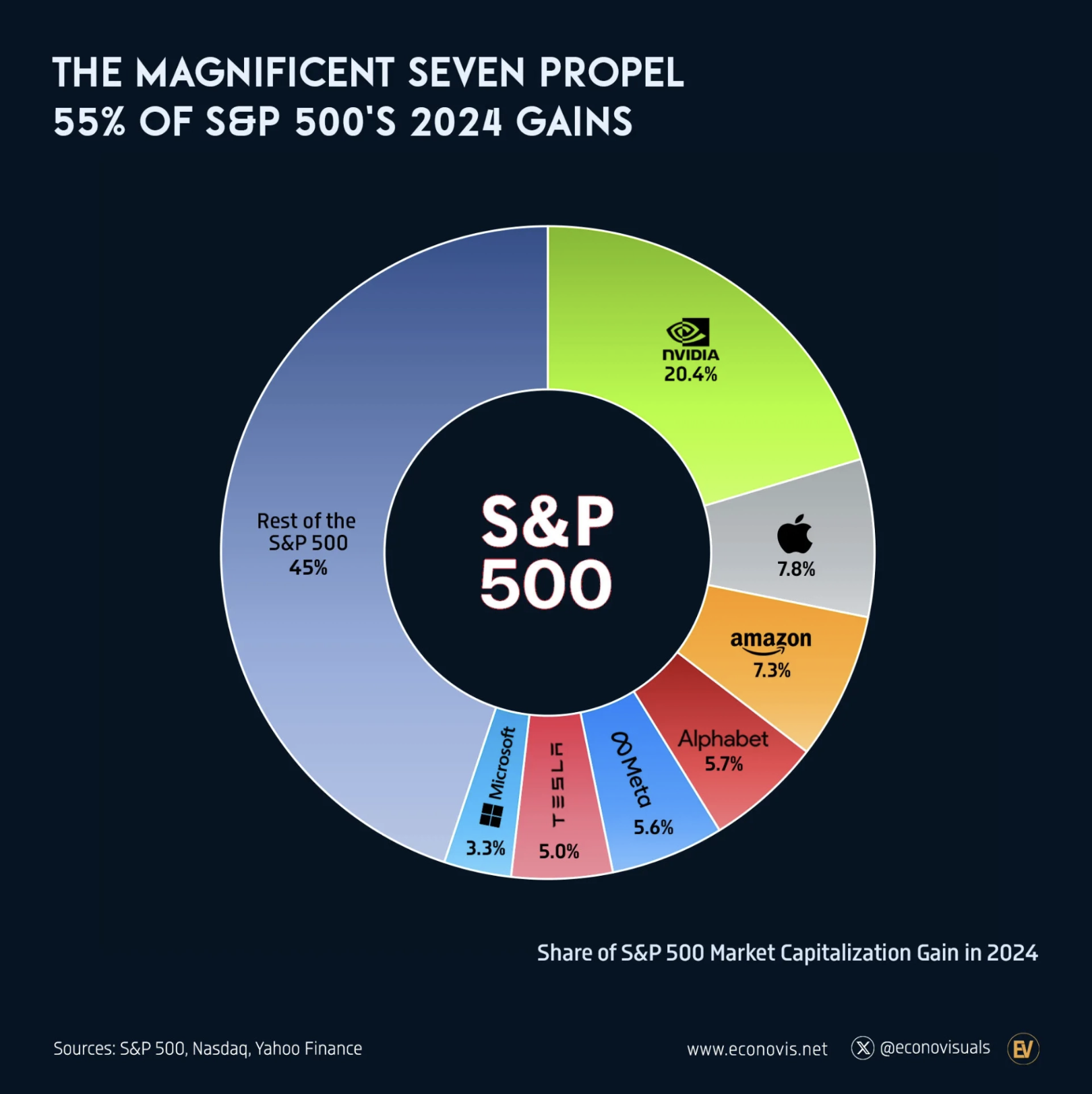 Im Jahr 2024 zeichnet sich ein klarer Trend ab: Sieben Unternehmen dominieren die Performance des S&P 500 und sind für 55% der Marktkapitalisierungsgewinne verantwortlich.