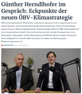 ÖBV-Vorstand Günther Herndlhofer erläutert im Gespräch mit e-fundresearch.com Gastmoderator Josef Obergantschnig die Hintergründe der neuen Klimastrategie seines Hauses. Neben regulatorischen Anforderungen setzt die ÖBV dabei gezielt auf einen kooperativen Ansatz. Das Interview beleuchtet, wie die Strategie über reine Kennzahlen hinausgeht, welche Rolle wissenschaftliche Fakten spielen und warum Nachhaltigkeit für institutionelle Investoren vor allem ein Werkzeug des Risikomanagements ist.