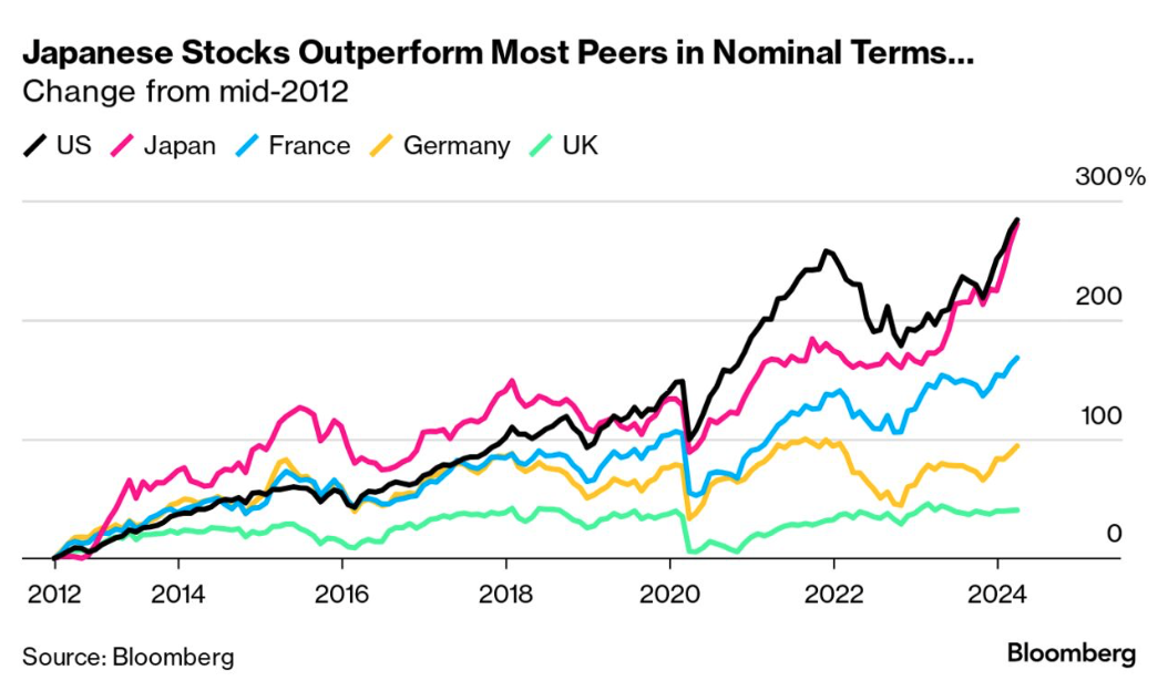 Das hat mich sehr überrascht! Mit japanischen Aktien konntest du seit 2012 genau so viel verdienen wie mit US-Aktien.