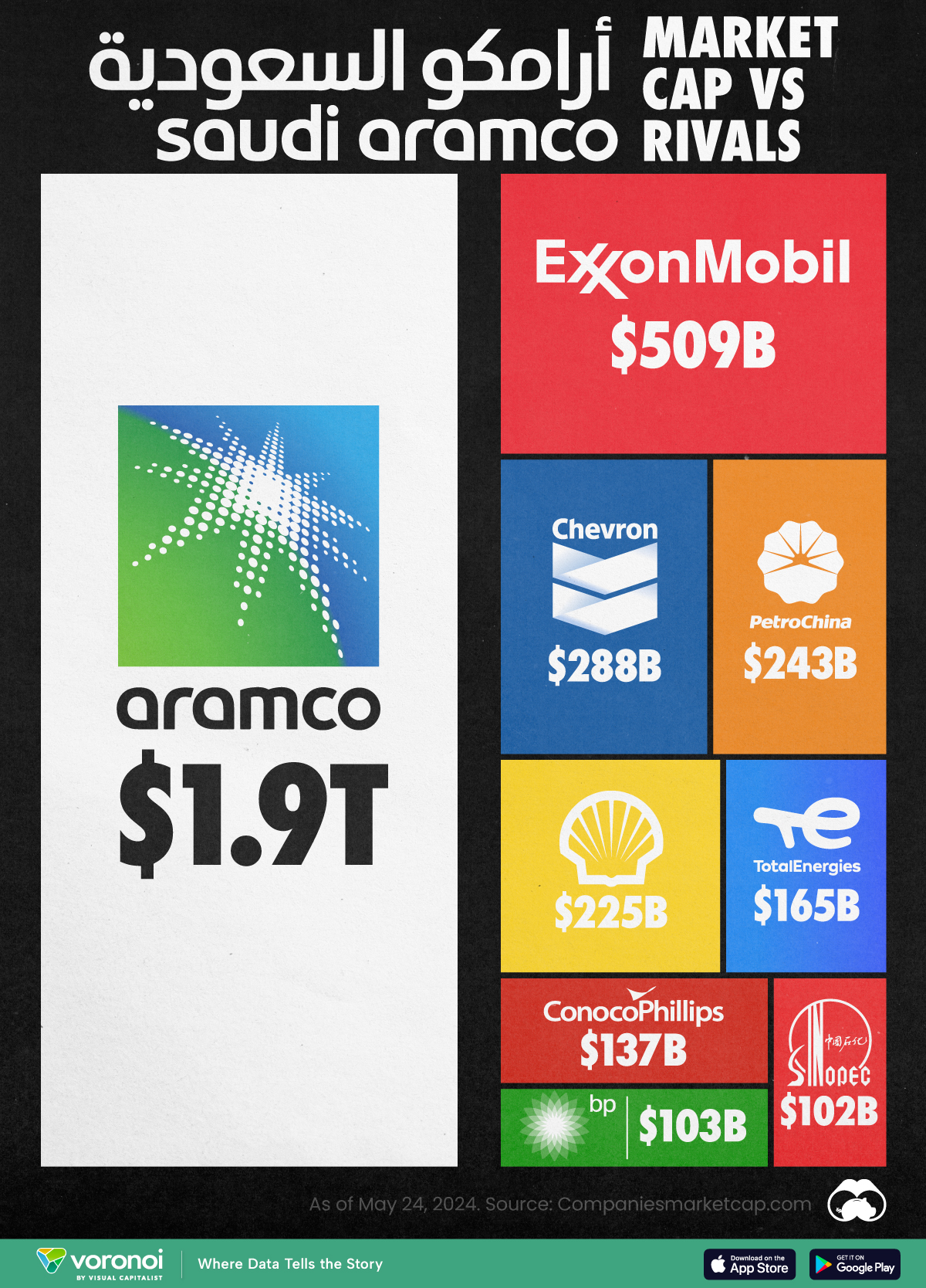 Saudi Aramco zählt mittlerweile zu den größten und wertvollsten Unternehmen der Welt. Mit einer Marktkapitalisierung von $1,9 Billionen übertrifft das Unternehmen viele andere führende Ölkonzerne.