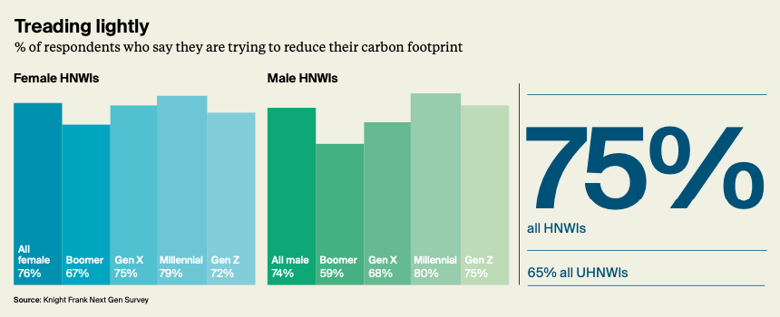 Das Thema Nachhaltigkeit gewinnt auch in der Geldanlage immer mehr an Bedeutung. 75% aller HNWIs (High-Net-Worth Individuals, also Personen mit einem investierbaren Vermögen von mindestens einer Million US-Dollar) gaben an, ihren CO2-Fußabdruck reduzieren zu wollen.