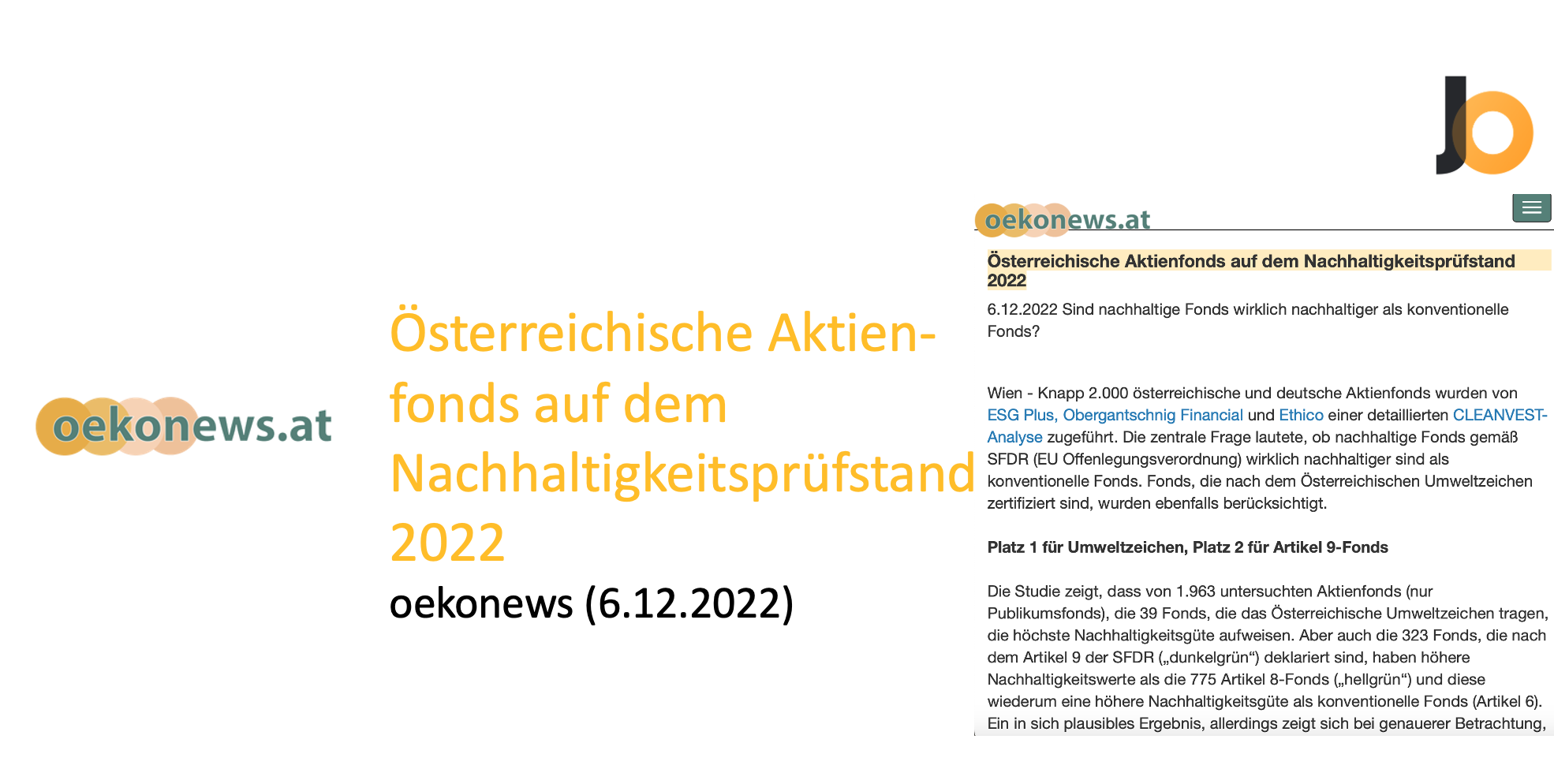 Online-Artikel: Österreichische Aktienfonds auf dem Nachhaltigkeitsprüfstand 2022
