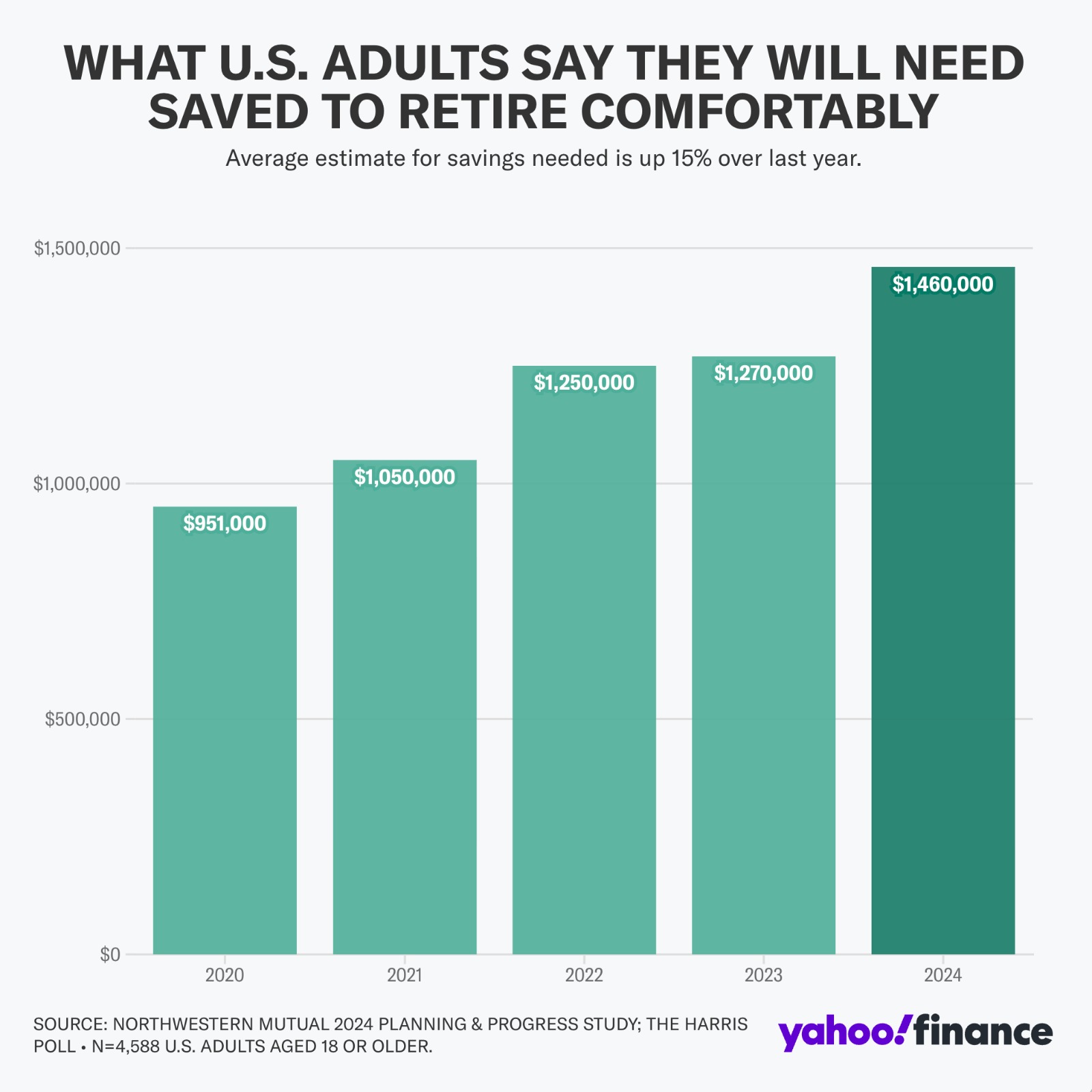 ➡️ Im Jahr 2020 gaben die Befragten noch an, dass $951.000 ausreichen würden, um sorgenfrei in den Ruhestand zu gehen. Nur vier Jahre später, im Jahr 2024, haben sich die Vorstellungen deutlich erhöht: Jetzt fühlen sich die Befragten erst mit einem Vermögen von $1.460.000 gut gerüstet, um optimistisch auf die nächsten Jahrzehnte blicken zu können.