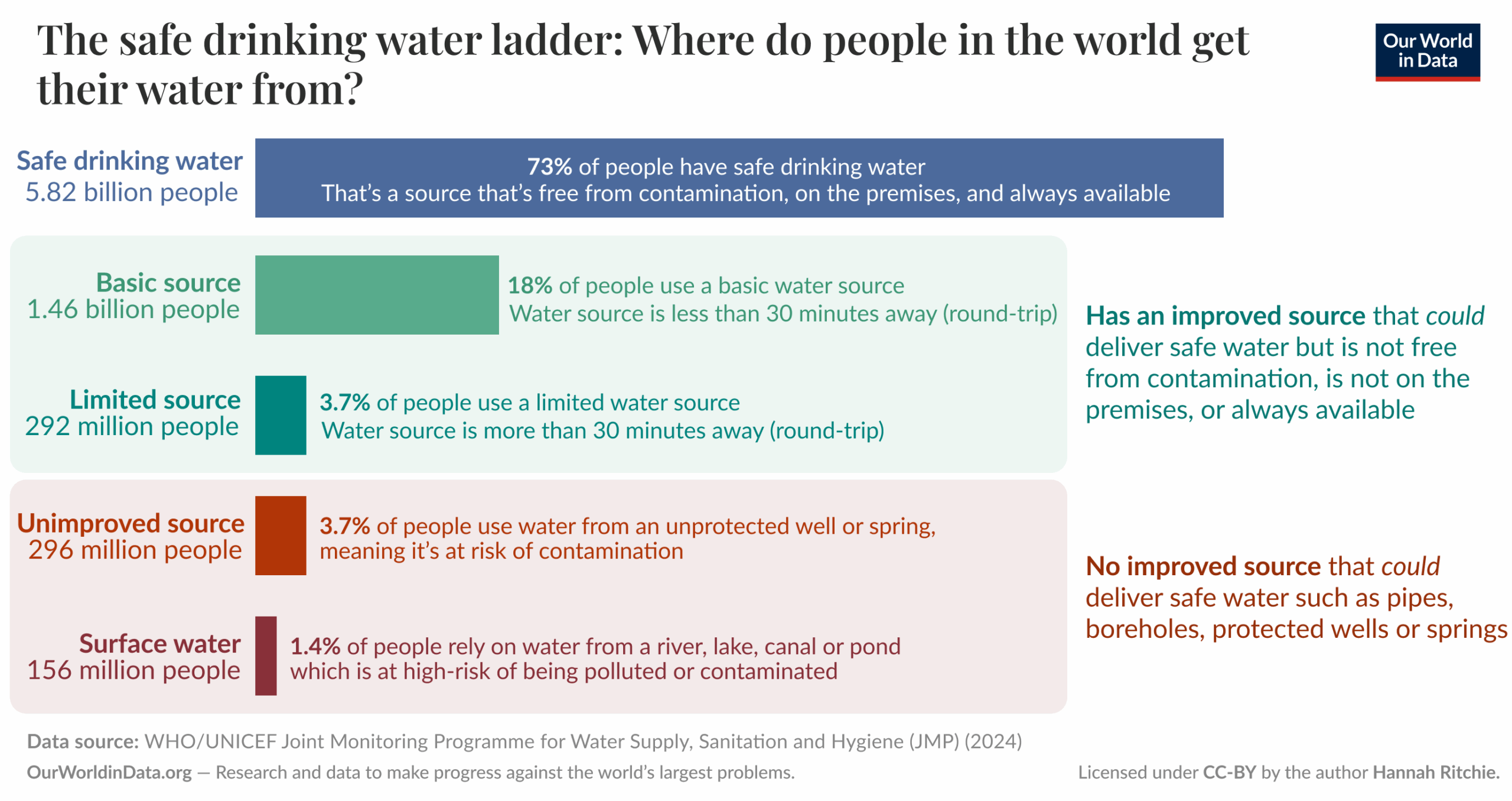 Quelle: OurWorldInData.org / Was es bedeutet, kein sicheres Wasser zu haben / Screenshot vom 26.06.2025, 11:22 Uhr