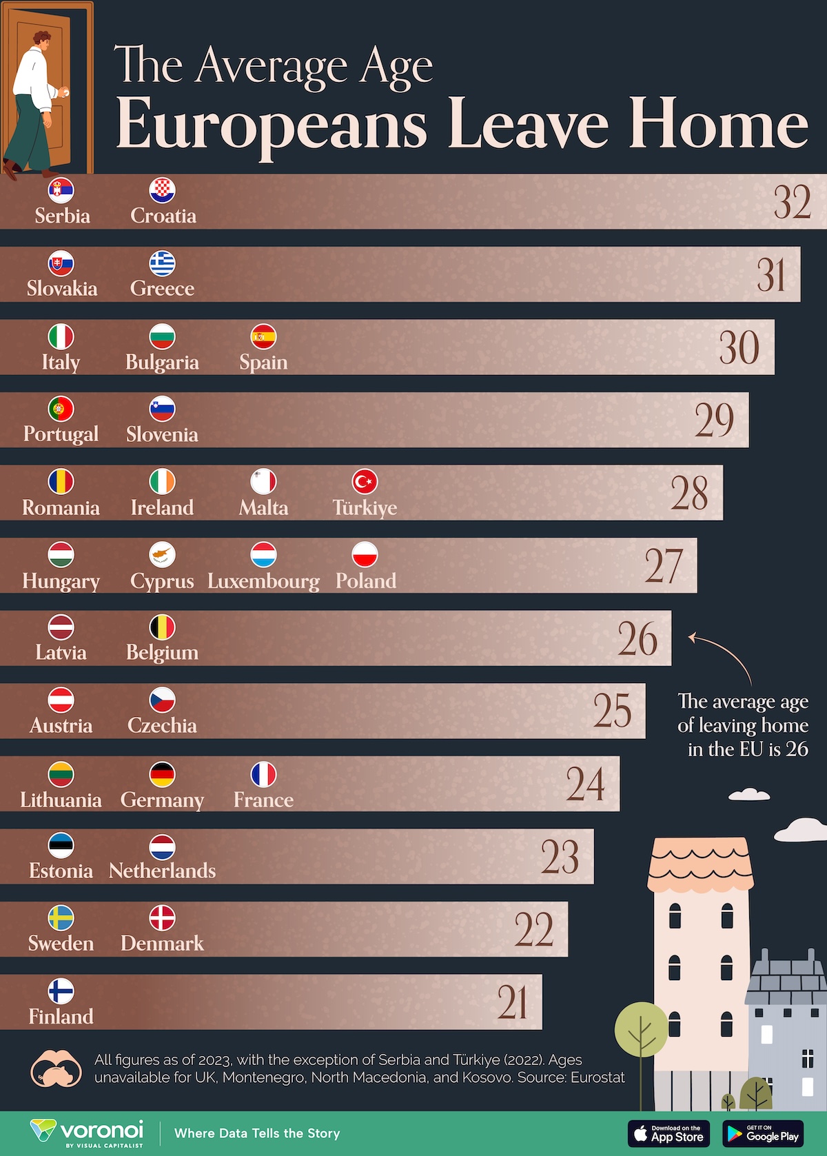 In Europa verlassen „Kinder“ durchschnittlich mit 26 Jahren das elterliche Nest.