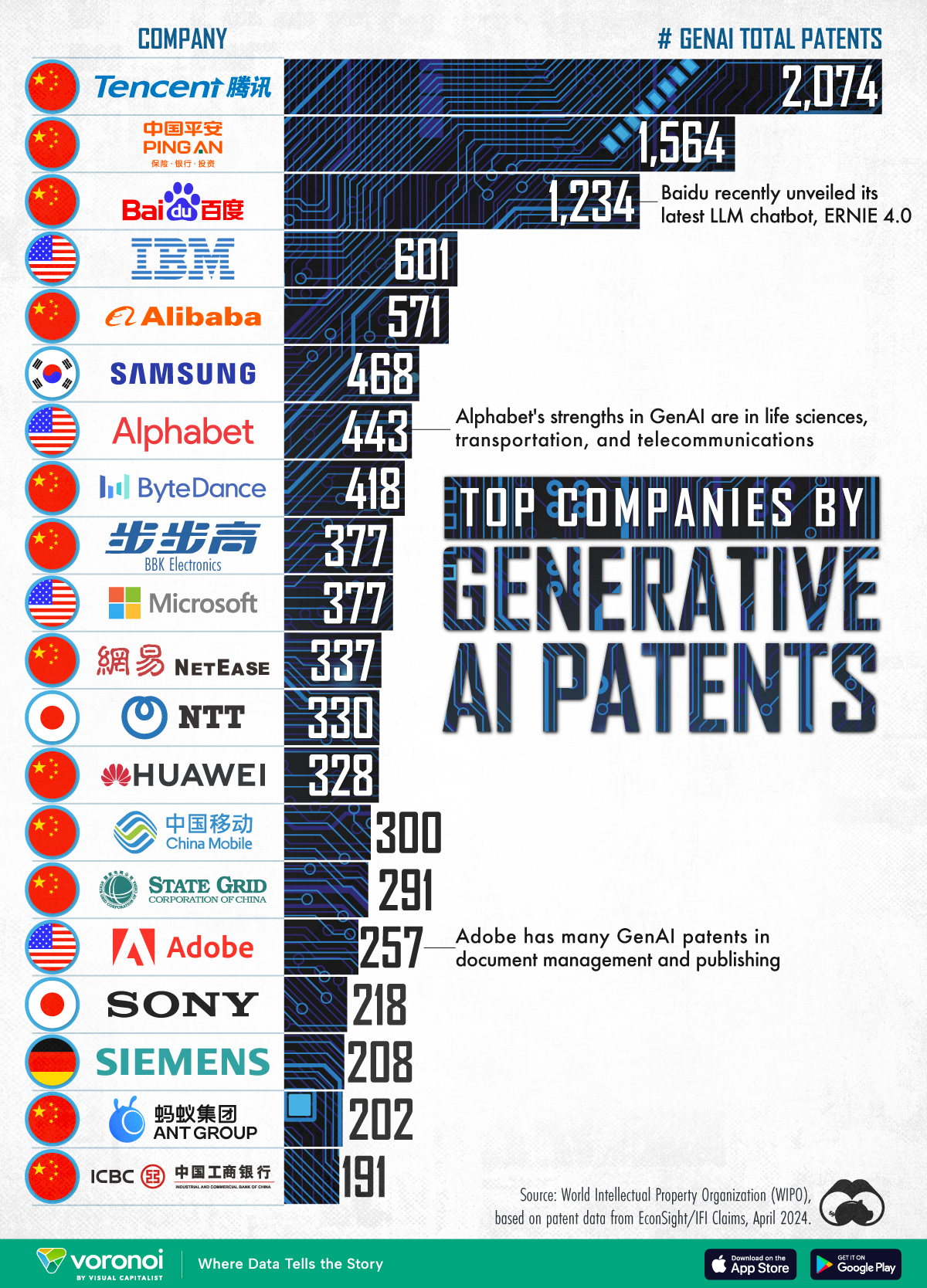 China dominiert den Markt. Aber auch die Bigtechs Alphabet oder Microsoft finden sich in der Top-Liste wider.