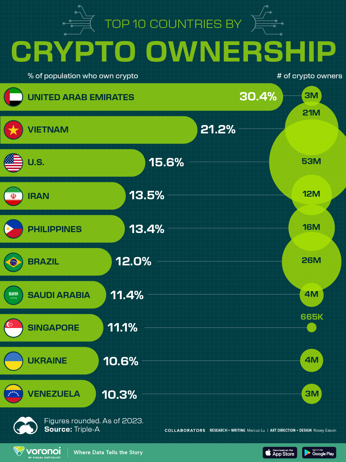 Top-5 Länder nach Anteil der Bevölkerung, die Krypto besitzt: