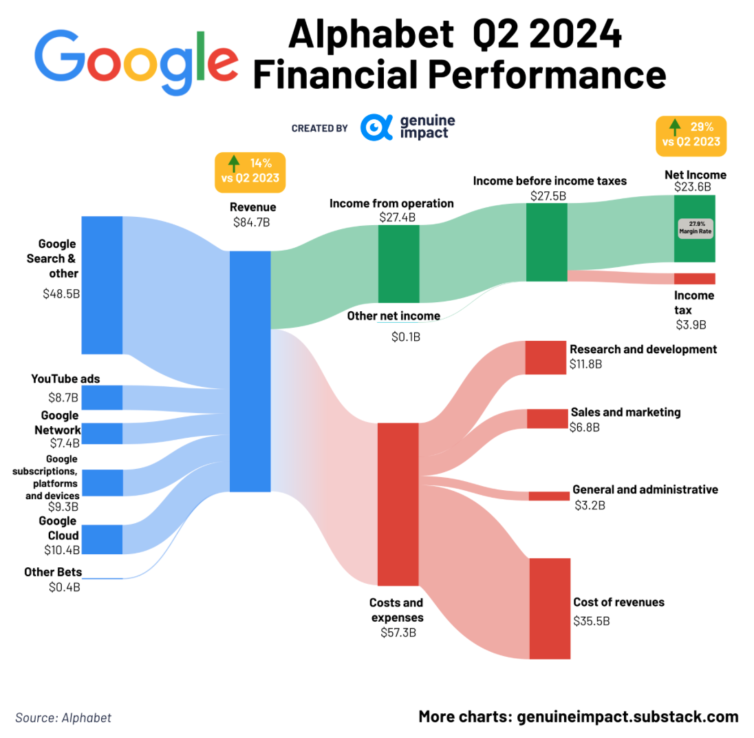 Im zweiten Quartal hat Alphabet einen Gewinn von $23,6 Mrd. erzielt, was einer Steigerung von 29% gegenüber dem Vorjahr entspricht.