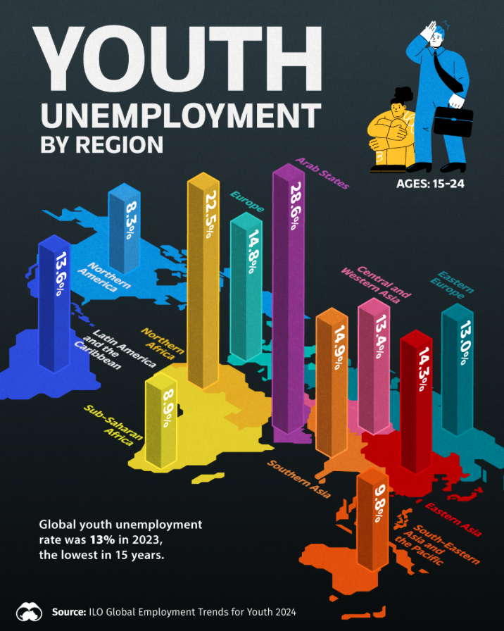 Weltweit ist die Jugendarbeitslosigkeit 2023 auf den niedrigsten Wert seit 15 Jahren gesunken. Fakt ist jedoch, dass immer noch 13 % der jungen Menschen zwischen 15 und 24 Jahren keinen Job haben.